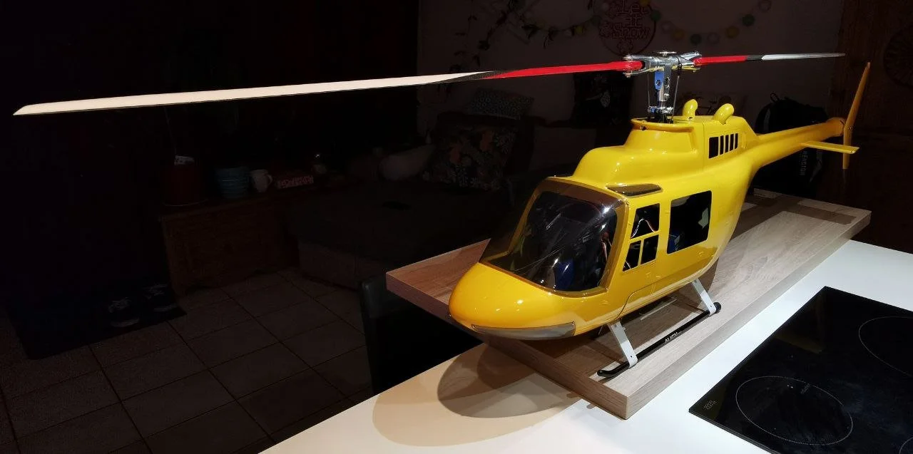 Cela fait des années que je veux avoir un hélicoptère radiocommandé et à treize ans mes parents m’offre mon premier hélicoptère thermique. Un hélicoptère taille 550 qui est déjà impressionnant et qui lie cette passion des choses qui volent à celle du pilotage.